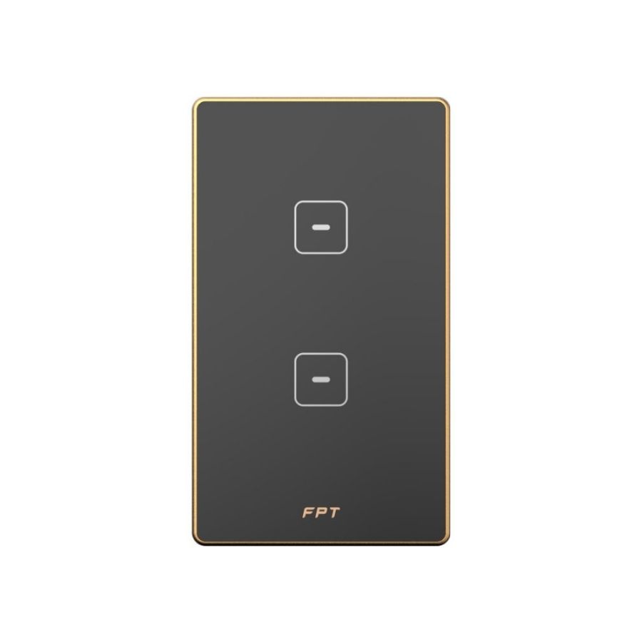 Công tắc cảm ứng 2 nút chữ nhật champagne Hera