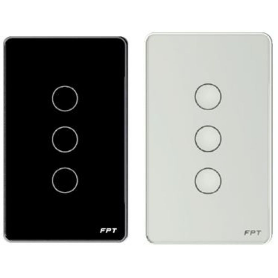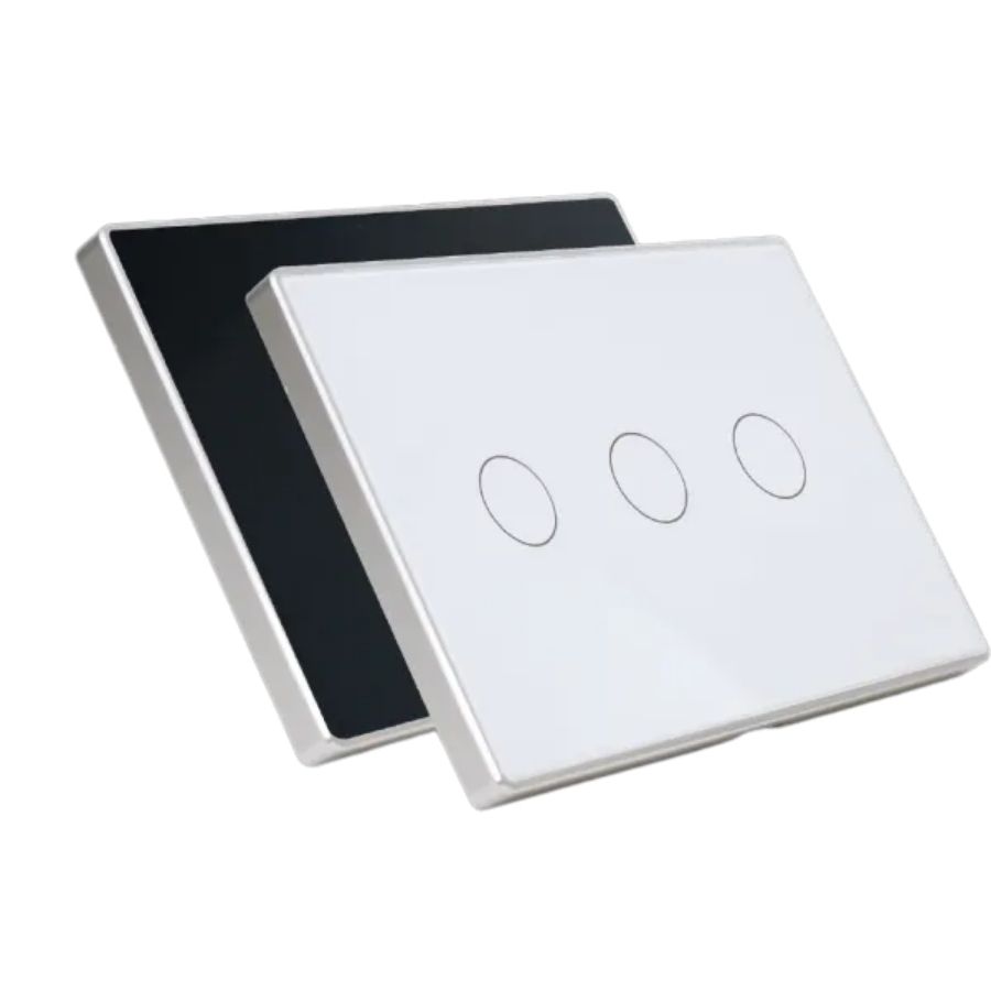 - Kiểu dáng chữ nhật, ba nút cảm ứng bố trí cân đối, viền có bo cạnh kim loại tinh tế, phù hợp với các phong cách nội thất hiện đại.