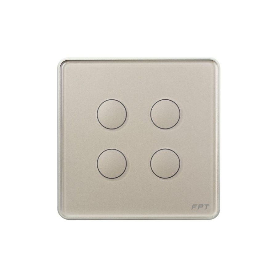 Công tắc cảm ứng 4 nút vuông Champagne Athena là mẫu công tắc thông minh cao cấp của FPT Smart Home, sở hữu thiết kế vuông hiện đại, viền màu Champagne sang trọng và mặt kính cảm ứng chống trầy – chống bám vân tay. Với 4 nút cảm ứng bố trí cân đối, tích hợp đèn LED định vị và chip Bluetooth thế hệ mới, sản phẩm cho phép điều khiển đèn và thiết bị điện nhanh nhạy qua smartphone, giọng nói hoặc tự động theo ngữ cảnh. Đây là lựa chọn lý tưởng để nâng cấp không gian sống tiện nghi và đẳng cấp.