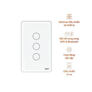 Công tắc cảm ứng 3 nút chữ nhật trắng Leto WiFi – Bluetooth Mesh